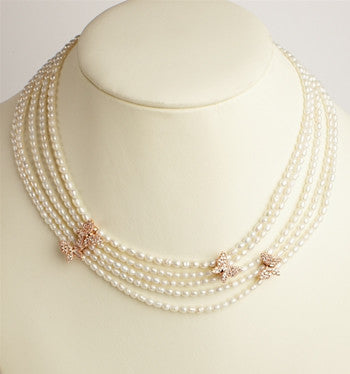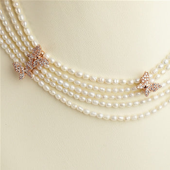 Fresh Water Pearls with Rose Gold Butterflies
